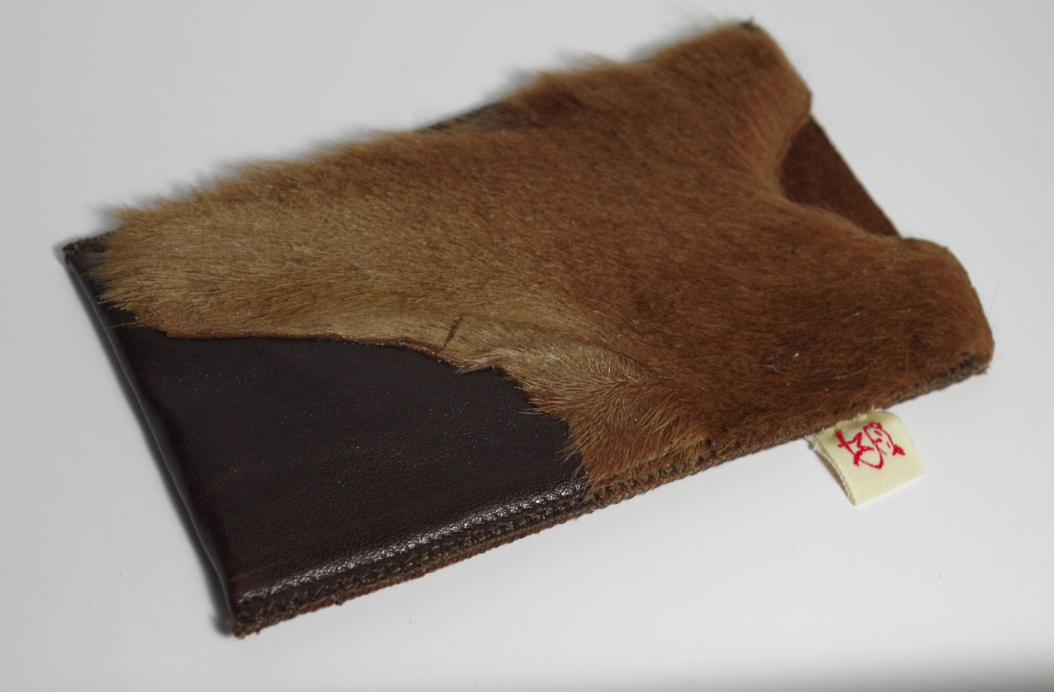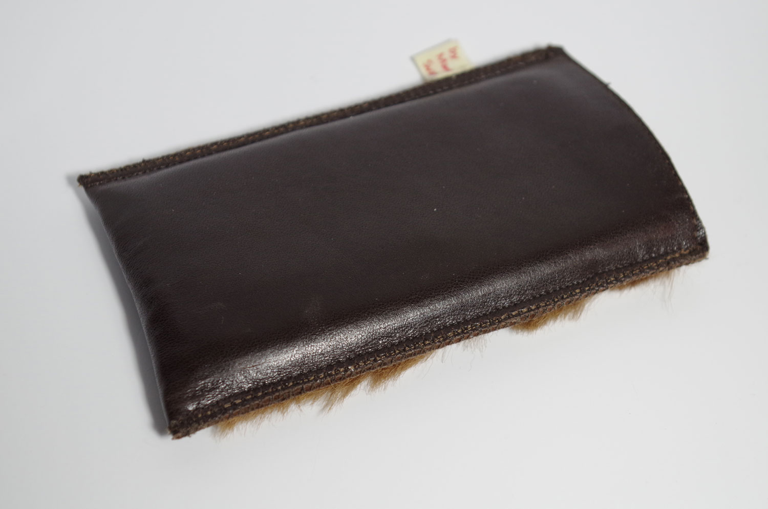aus braunen Nappaleder und Fell gefüttert mit braunen 2 mm Wollfilz.