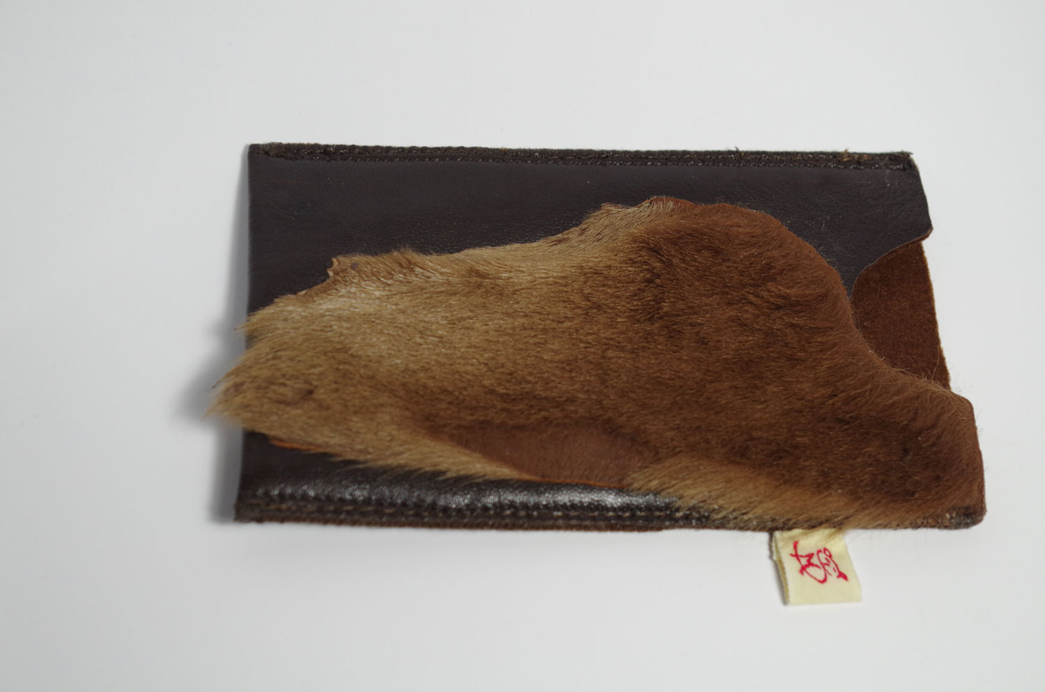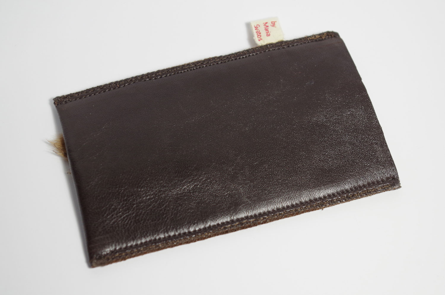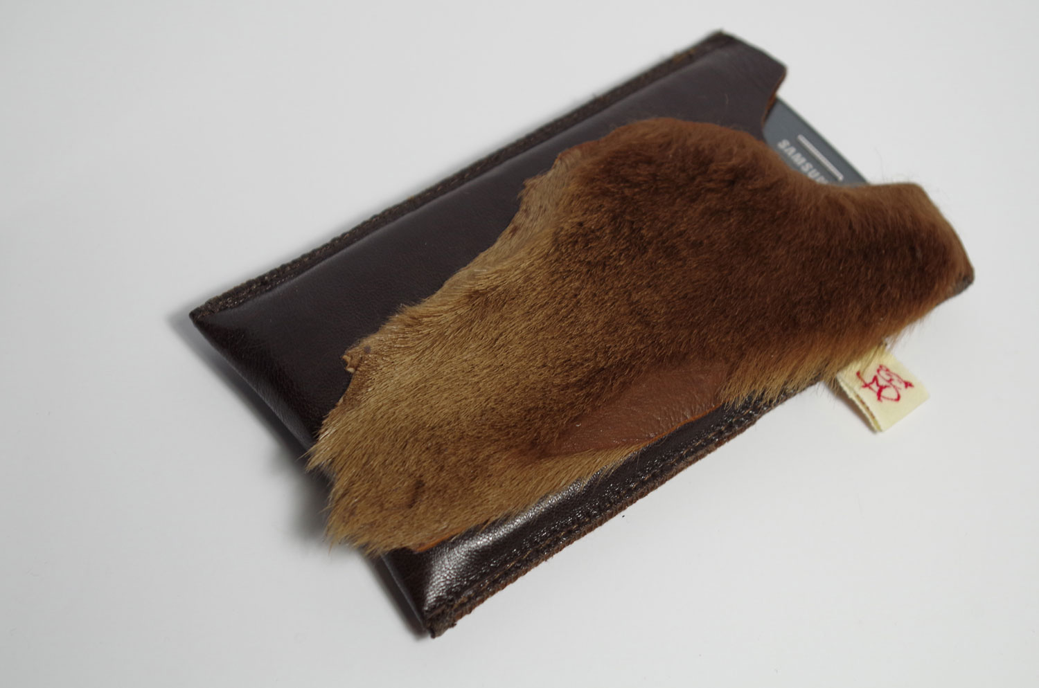 aus braunen Nappaleder und Fell gefüttert mit braunen 2 mm Wollfilz.
